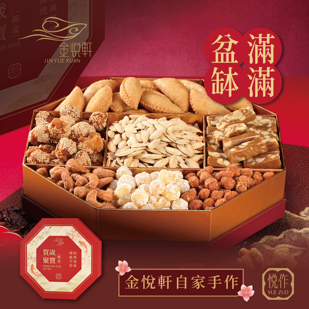 禮盒盛載多種不同的精選餅食,豪華豐盛,盆滿缽滿,一家人品嘗或摯送親友皆宜。